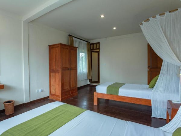 The rooms in the villa are set to give you a peaceful relaxation. It is the perfect choice for your holiday with family or friends as the villa is designed with two rooms in the same area.